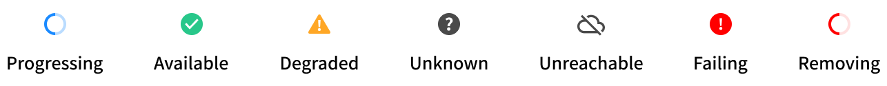 • Unknown - The cluster status API has an unexpected, internal error.